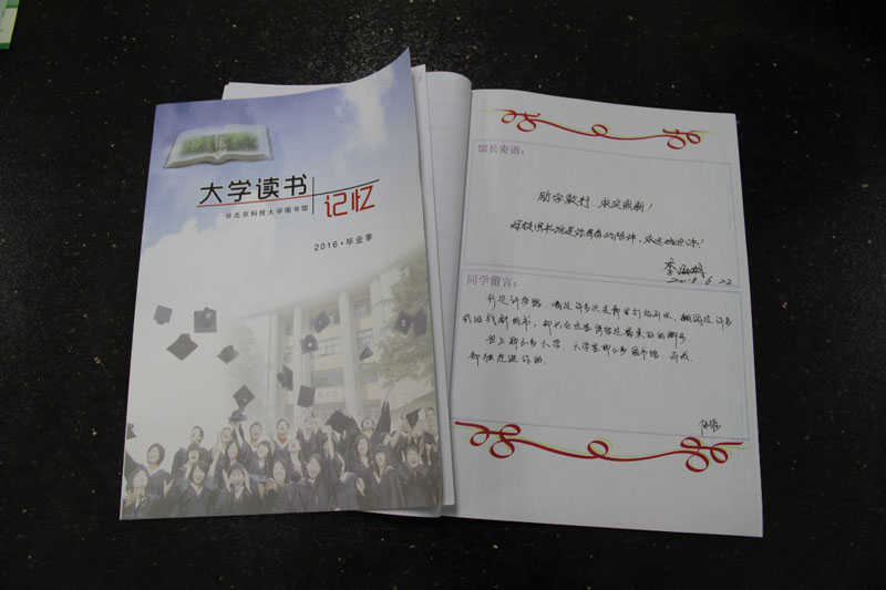 每年毕业季,图书馆都会为毕业生们送上独家毕业礼物《大学读书记忆》,图书馆精心设计、用心编辑、一对一定制每一份小册子,送到毕业生的手里,成为毕业生永远的读书记忆。在领取《大学读书记忆》的同时,毕业生也为图书馆留下了同学们的“图书馆独家回忆”。