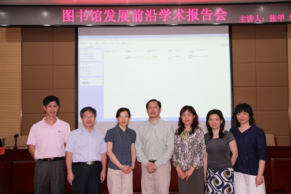 2011年6月16日下午2:00,图书馆邀请美国约翰霍普金斯大学系统部张甲教授,在图书馆东楼四层报告厅作了题为“学科服务相关的技术综述与展望”和“系统技术应用与图书馆发展”的报告。报告会由王瑜副馆长主持,季淑娟馆长、北京航空航天大学图书馆杜慰纯副馆长等老师听取了此次报告会,报告会精彩纷呈,听众均沉浸在知识的获取中。