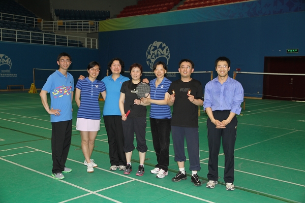 图书馆技术部小家自成立以来,在部主任和小组长的带领下,组织开展了形式多样的文体活动。2011年5月11日,技术部小家在学校体育馆开展了羽毛球友谊赛,活动延续了技术部团结向上的精神。本次比赛采用男子双打和女子双打形式,人人参赛,均以饱满的精神状态、昂扬的斗志投入比赛,惊险救球动作不断出现。最后参与人员合影以做纪念。